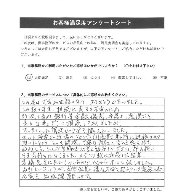 事務所の方の対応も良く、こちらにお願いして良かったと思います。